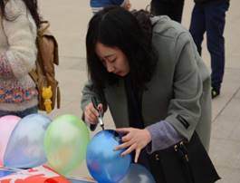 上午10点钟,在四大发明广场,女生们写下自己的心愿,并附上联系方式,藏在气球中,挂在“心愿树”上,等待有心的他的驻足,实现自己的愿望。两院男生积极踊跃,戳破秘密,三尺红绳之约尽在自己的手中,为女性同胞打造私人定制的惊喜。